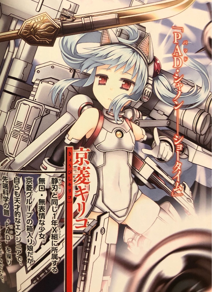 【アリスベル豆知識】作中の航空パワードスーツ型先端科学兵器・PADの機体名(『シャノン』『レタ=デルオロ』『白刃(はくじ)』『クリムゾン・ベル』)は、全てキリコが命名している。キリコは各機体ごとに適切と思われるコードネームを考案しており、必ずしもそれぞれの名称に関連性は無い。